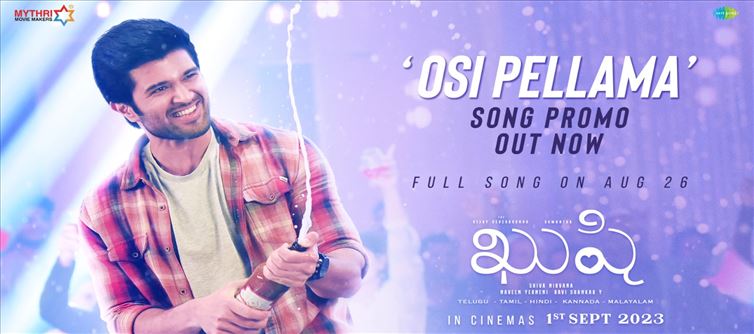 తెలుగు సినీ ప్రేమికులు ఈ మధ్య కాలం విడుదలకు రెడీగా ఉన్న సినిమాలలో ఖుషి సినిమాపై మంచి అంచనాలు పెట్టుకున్నారు. అలా ప్రేక్షకుల్లో ఈ సినిమాపై మంచి అంచనాలు పెరగడానికి ప్రధాన కారణం ఈ సినిమా సంగీతం అని చెప్పవచ్చు. ఇప్పటి వరకు ఈ సినిమా నుండి నాలుగు పాటలను విడుదల చేయగా ఆ నాలుగు పాటలు కూడా అదిరిపోయే రేంజ్ లో ఉండడంతో ఈ మూవీ పై ప్రేక్షకుల్లో భారీగా అంచనాలు పెరిగి పోయాయి. ఇకపోతే తాజాగా ఈ మూవీ బృందం ఈ సినిమా లోని 5 వ పాట విడుదలకు రెడీ అయింది. అందులో భాగంగా ఈ మూవీ లోని 5 వ సాంగ్ అయినటువంటి "ఓసి పెళ్ళామా" సాంగ్ ను ఈ రోజు అనగా ఆగస్టు 26 వ తేదీన విడుదల చేయనుంది. అందులో భాగంగా ఈ మూవీ లోని "ఓసి పెళ్లామా" అంటూ సాగే ప్రోమో సాంగ్ ను ఈ మూవీ బృందం నిన్ననే విడుదల చేసింది.
