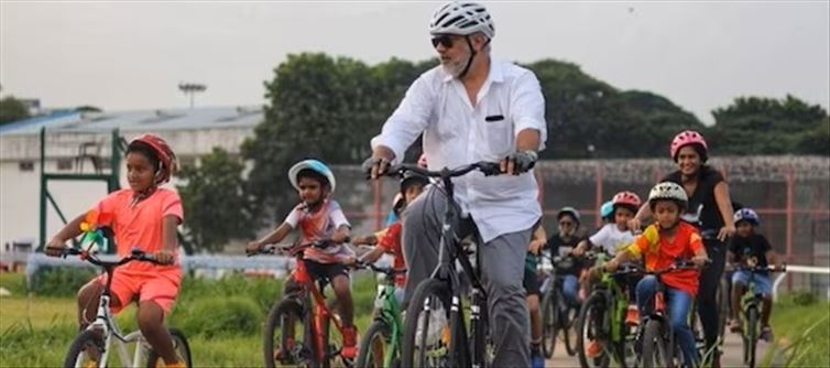 Currently taking a break from work is ajith Kumar. He recently finished another stage of his bike journey and came back to Chennai. He covered Germany, Denmark, and norway this time. ajith kumar recently appeared to be coaching several young people. He may be seen cycling among children on a racecourse in a video. He is heard in the video telling a child not to go to the corners.