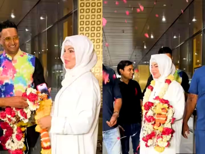 Entertainment queen rakhi sawant is in the headlines these days. Rakhi had recently gone to Mecca to perform Umrah. After performing Umrah, Rakhi has returned to mumbai and has received a special welcome at the airport. Rakhi was welcomed with flowers by her friends and fans. Seeing Rakhi, the paparazzi started shouting her name, then the actress said to call them Fatima, not Rakhi.