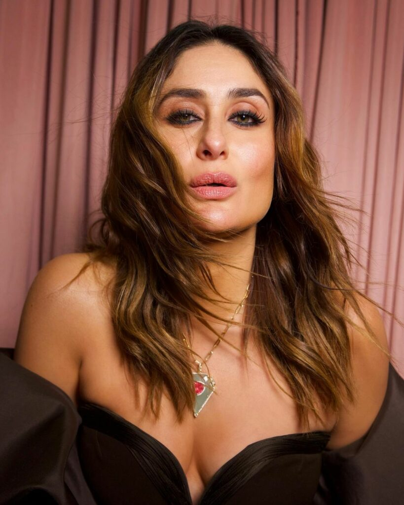 Kareena Kapoor Khan, radiant as always, graced the occasion in a stunning strapless black gown that easily attracted attention. Her every curve and feature were highlighted by the dance of light and shadows, which gave her a timeless grace. Her eyes were embellished with dark, smoky makeup, a mysterious touch that alluded to a plethora of untold mysteries.