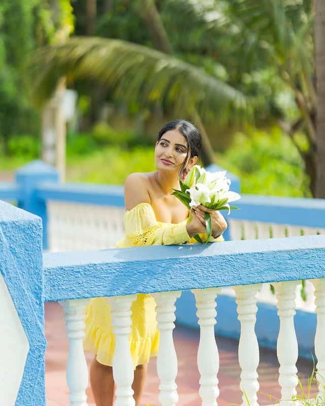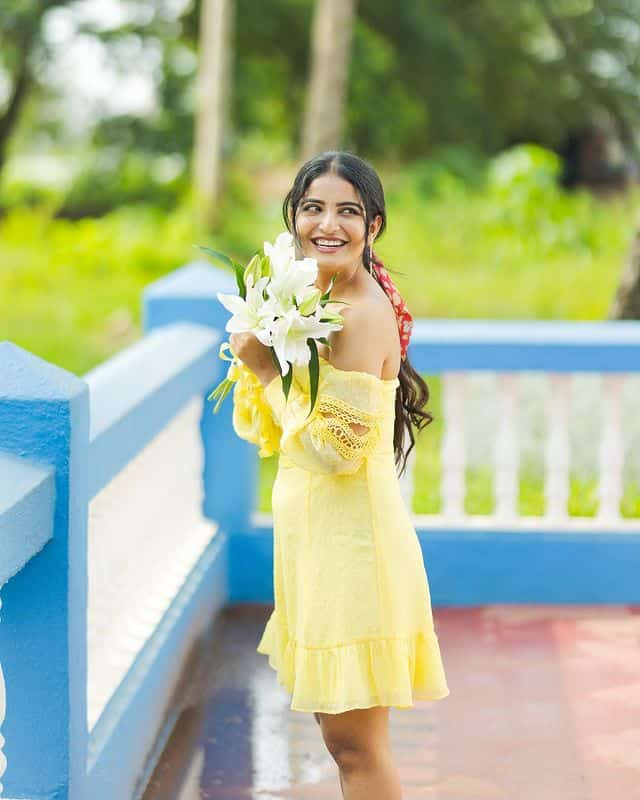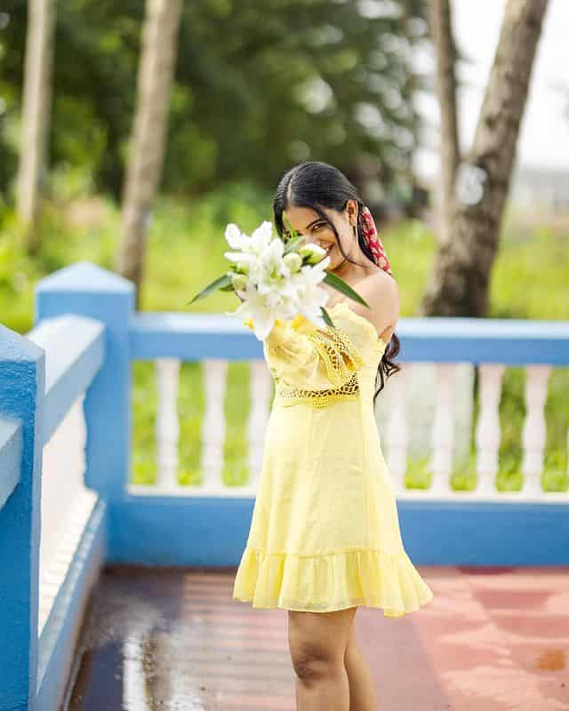 Ananya recently turned attention as she dazzled in a yellow short dress with a drop shoulder. She held flowers lightly in her palm, radiating elegance and beauty that enthralled everyone in the room. She became a fashion icon due to her exquisite sense of style and self-assured demeanour. In terms of her professional life, "Bootcut Balaraju" is the name of her recently announced project.