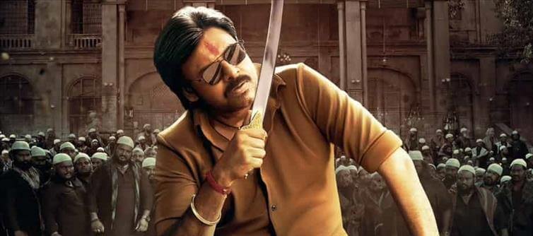 Numerous Muslims are nearby and are all intensely gazing at Pawan Kalyan, who is dressed in a mass outfit and is seated in front of a large mosque while wearing a stripped lungi. He is brandishing a large sword that is bloody. This is one of Pawan Kalyan's more over-the-top personas, and director Harish shankar appears to be portraying him as a vicious police officer stationed in a delicate region.
