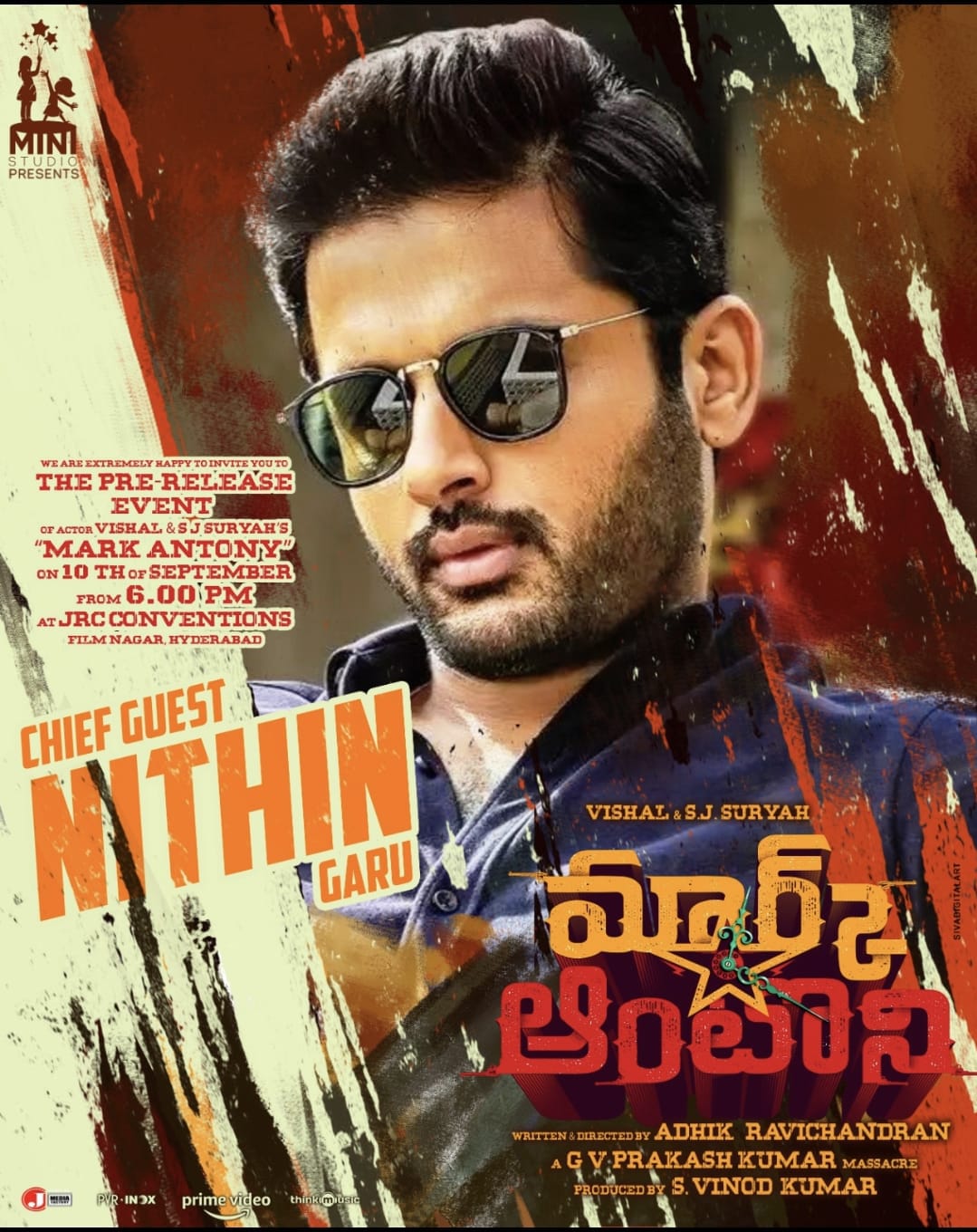 అలా ఈ మూవీ ట్రైలర్ సూపర్ గా ఉండడంతో ఈ మూవీ పై ప్రేక్షకుల్లో కూడా అంచనాలు భారీగా పెరిగి పోయాయి. ఇది ఇలా ఉంటే తాజాగా ఈ మూవీ బృందం ఈ సినిమాకు సంబంధించిన ఓ క్రేజీ అప్డేట్ ను ప్రకటించింది. తాజాగా ఈ మూవీ బృందం ఈ సినిమా యొక్క ఫ్రీ రిలీజ్ ఈవెంట్ కు సంబంధించిన అప్డేట్ ను ప్రకటించింది. ఈ మూవీ యొక్క ప్రీ రిలీజ్ ఈవెంట్ ను సెప్టెంబర్ 10 వ తేదీన సాయంత్రం 6 గంటలకు "జే ఆర్ సి" కన్వెన్షన్ , ఫిలిం నగర్ , హైదరాబాదు లో నిర్వహించనున్నట్లు దీనికి టాలీవుడ్ యువ నటుడు నితిన్ ముఖ్య అతిథిగా విచ్చేయునున్నట్లు ఈ మూవీ బృందం అధికారికంగా ప్రకటిస్తూ ఓ పోస్టర్ ను కూడా విడుదల చేసింది. ప్రస్తుతం ఈ పోస్టర్ సోషల్ మీడియాలో వైరల్ అవుతుంది. ఇకపోతే విశాల్ ఆఖరుగా లాఠీ మూవీ తో ప్రేక్షకులను పలకరించాడు. ఈ సినిమా బాక్స్ ఆఫీస్ దగ్గర బోల్తా కొట్టింది. మరి మార్క్ ఆంటోనీ సినిమాతో విశాల్ ఏ రేంజ్ సక్సెస్ ను అందుకుంటాడో చూడాలి.
