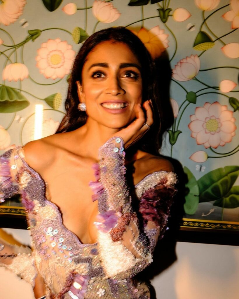 Shriya Saran, who is 40 years old, yet captivates audiences with her breathtaking beauty and maintains a hot body that many like. Her glitzy character just appears to get more intense with time. Shriya recently turned heads when she showed up at the GQ party. She wore a stunning low-neck, shoulder-drop minidress with a multicoloured, shimmering pattern. Her outfit radiated refinement and appeal when worn with shimmering stilettos.