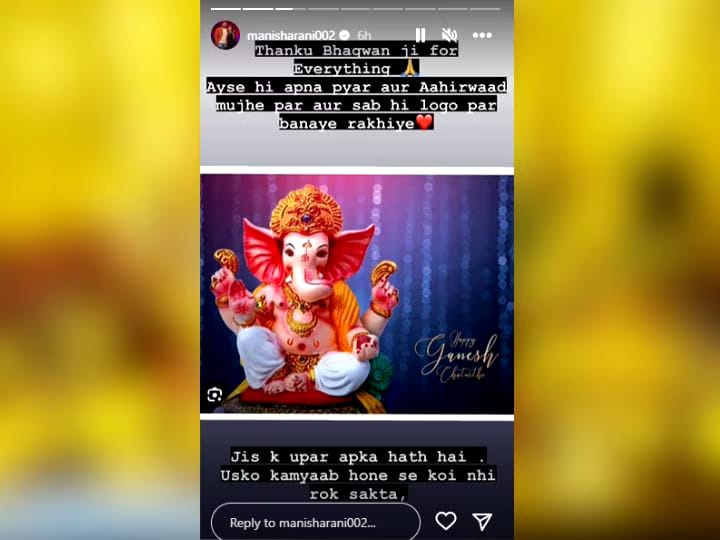 A wish on her social media account on the occasion of Ganesh Chaturthi. He uploaded a photo of Bappa and wrote, "Thank you Lord for everything. Keep your love and blessings on me and all the people. No one can stop the one whose hand is on you from being successful.". jiya Shankar also uploaded a photo and wrote, 'Bappa Aale.'