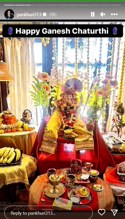 Expressing her happiness on social media, Pankhuri Awasthi wrote in the caption, "Happy Ganesh Chaturthi." gautam Rode also shared a picture on twitter of himself and his wife sitting with folded hands in front of the Ganesh idol. In the background, his house is seen decorated with garlands in an atmosphere of celebration.
