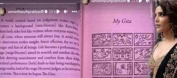 The well-known actress samantha is currently taking a break from performing to focus on her health and get ready for her myositis treatment overseas. She has abandoned the film projects she had agreed to work on and even returned the compensation. In spite of her recent social media seclusion, samantha has resumed posting inspirational quotations and pictures of herself deep in the Bhagavad Gita while identifying the sections she is focusing on on her Instagram.
