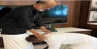 The "Don" actor, who was dressed entirely in white, was seen touching Rajinikanth's feet, crouching down, and performing a full namaskaram while the actor was wearing a kurta and dhoti. Rajinikanth smiled and extended his full blessings. Later, after sharing a hug, Rajinikanth and Raghava posed for a picture, with Rajinikanth grinning and Raghava clearly having the time of his life.