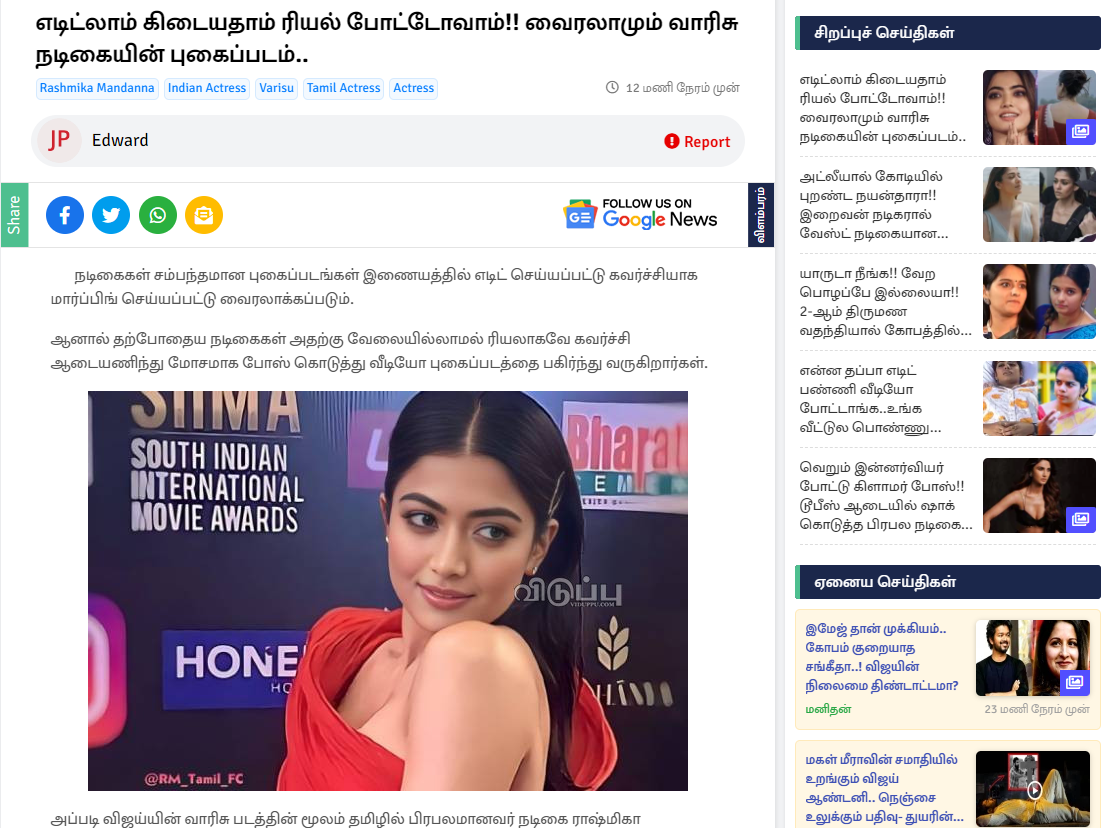 In this case, a hot photo of rashmika in a white tight dress exposing her breasts structure has been leaked and going viral on social media. Even though some netizens claimed it was morphed and photoshopped, a leading tamil web portal has confirmed it's not fake and it's original. rashmika mandanna was looking in an integrated state in that photo and it was obvious.