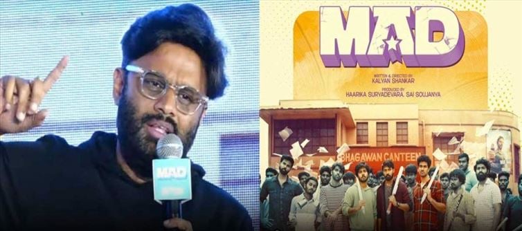 సితార ఎంటర్టైన్మెంట్స్ తాజాగా నిర్మించిన యూత్ ఫుల్ క్రేజీ ఎంట్రైనర్ మ్యాడ్. ఈ సినిమా అక్టోబర్ 6న విడుదల కాబోతోంది. ఇక ఈ సినిమాతో కళ్యాణ్ శంకర్ టాలీవుడ్ కి దర్శకుడిగా ఎంట్రీ ఇస్తున్నారు. రామ్ నితిన్, సంగీత శోభన్, నార్నే నితిన్, శ్రీ గౌరీ, ప్రియా రెడ్డి, ఆనంతిక సునీల్ కుమార్, గోపిక ఉద్యాన్ ప్రధాన పాత్రలు పోషించారు. ఇప్పటికే విడుదలైన టీజర్ కి మంచి రెస్పాన్స్ రాగా, చిత్ర బృందం మూవీ ప్రమోషన్స్ లో భాగంగా సెప్టెంబర్ 26న 'నువ్వు నవ్వుకుంటూ' అంటూ సాగే మెలోడీ సాంగ్ విడుదల చేశారు. భీమ్స్ సిసిరోలియో ఈ పాటకు సంగీతం అందించగా, కపిల్ కపిలన్ ఆలపించారు. అయితే తాజాగా ఈ సినిమా ప్రెస్ మీట్ లో నిర్మాత సూర్యదేవర నాగ వంశీ సినిమా పట్ల