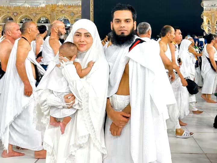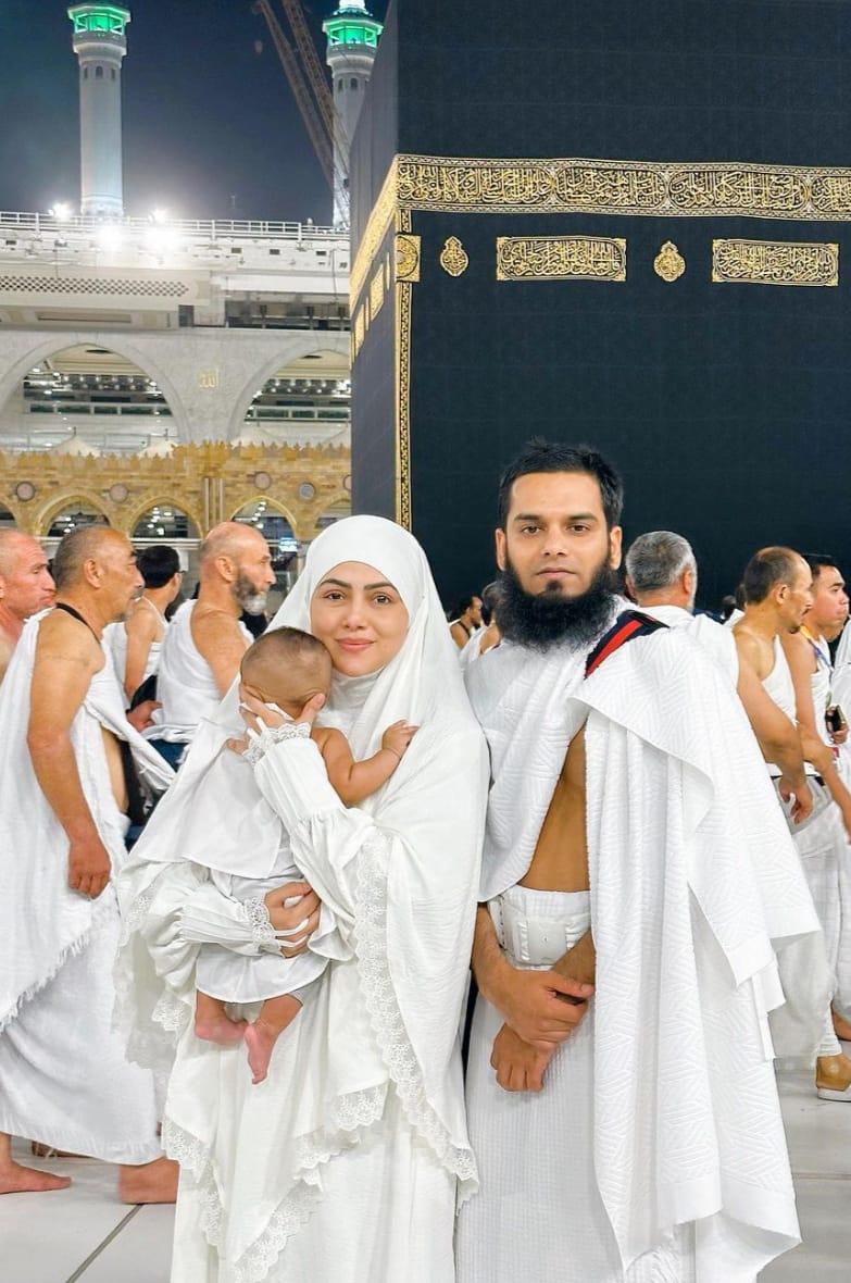 Sana Khan, who has said goodbye to the world of glamor, looks very happy in her married life. The former actress has completely immersed herself in Islamic style. Recently sana khan performed Umrah with her husband Mufti Anas Syed and son Tariq Jameel. sana has already performed Umrah but this is her first Umrah with her son. Sana Khan had gone to Umrah with her two-and-a-half-month-old son. His Umrah has been completed and he has shared a special picture from Kaaba Sharif. sana has posted a family photo from Kaaba Sharif on her instagram account in which she, her son in her lap, and her husband Anas are seen. sana has also written a long caption with this picture.