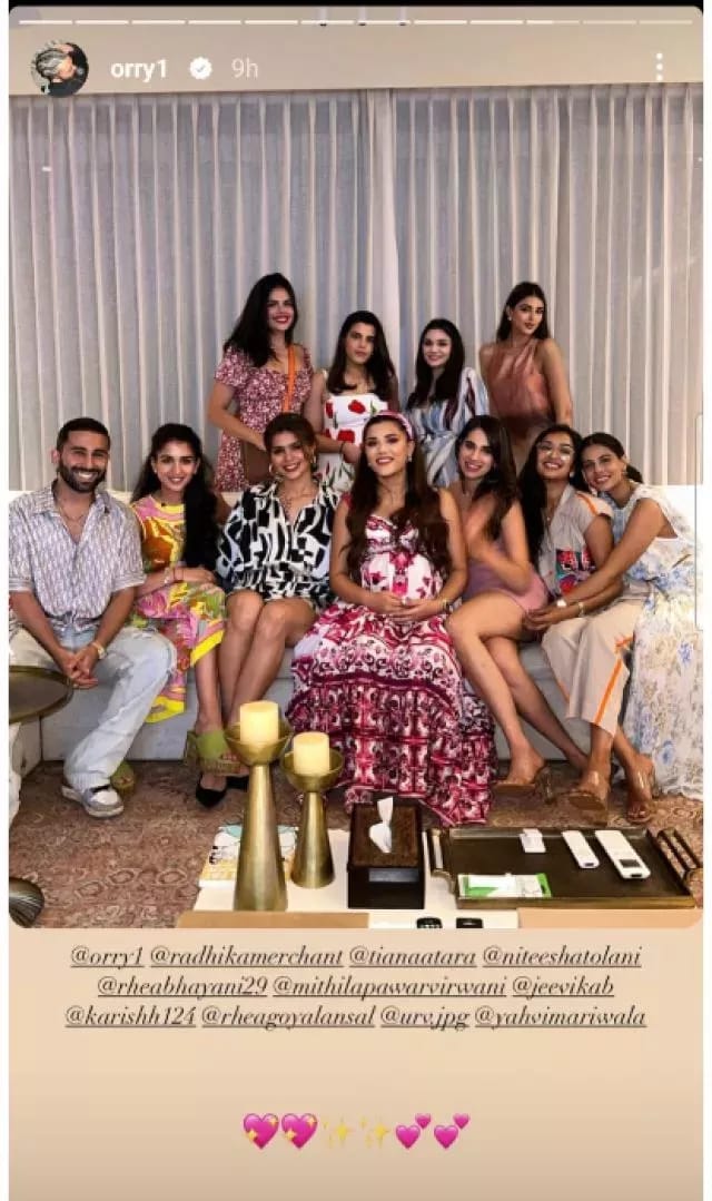On october 1, 2023, Radhika's bestie Orhaan Avatramani shared a picture from his friend's baby shower ceremony on his instagram handle. However, it was the presence of Nita Ambani's would-be daughter-in-law radhika Merchant that caught our attention. She was looking very beautiful in her casual dress. radhika wore a floral-printed silk co-ord set for the party. She styled her look with stud earrings, dewy makeup, open hair, and heels.