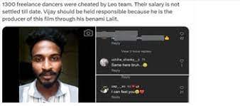 After that, even after four months, they have not received their salary. Whenever he called and asked, he did not get a proper answer. So he mentioned that the Leo team should fix this problem as soon as possible. After that, in the comments, the people who danced to that song said that they were in the same situation. This is causing a stir now. Made on a budget of 300 crores, Leo is expected to cross 1000 crores. The question has also arisen whether the producer who has made such a grand film has overlooked the innocent dancers. Also, while Vijay is also being talked about as the indirect producer of this, the voices of condemnation that he should give an answer for this are causing a stir.