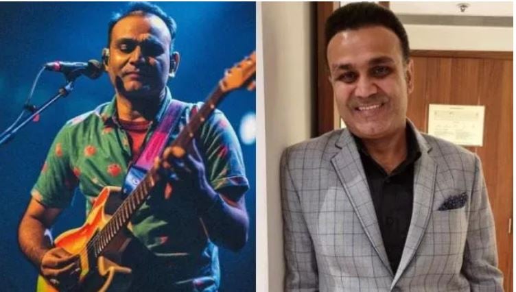 AI has shown virender sehwag as the main singer in a band. Dressed in a blue T-shirt, the cricketer can be seen focusing on his electric guitar. Well, Sehwag looks very cool in this look.