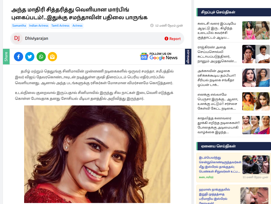 The funny thing about the Internet is that you may discover weird admirers who occasionally veer towards the spooky side. Frequently, one comes across absurdly altered pictures of stars and actresses, the majority of which are funny. samantha was included in a picture that has become popular on social media lately. Instead of naga Chaitanya, an avid fan(?!! ) of samantha has altered his own face to fit the body.