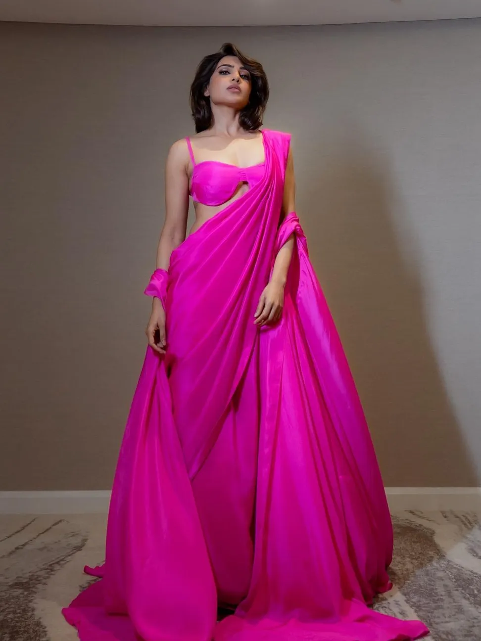 This incident happened in 2018 and was rekindled by the tamil portal Viduppu and the news has gone viral once again. rani pink saris seem to be rapidly gaining popularity for this holiday season, due to stars like samantha Ruth Prabhu, Neha Dhupia, and alia Bhatt. bollywood superstars continue to love the traditional drape, which is renowned for its endless versatility. The fact that fashion firms such as 431:88 are producing contemporary sari versions, such as the pre-stitched design, is evidence of the sari's enduring popularity and capacity to take on various shapes.