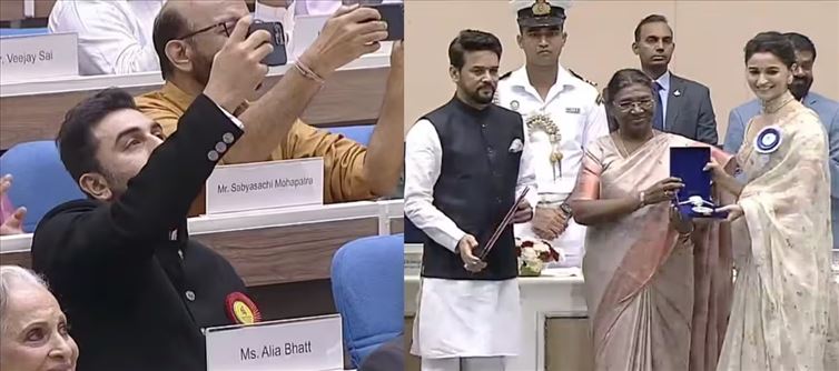 Alia Bhatt accepted the Best Actress award at the National Film Award 2023 ceremony and ranbir kapoor was brimming with pride. The 69th National Film Awards ceremony took place on tuesday in New Delhi. alia won the Best Actress award for Gangubai Kathiawadi, sharing the honour with kriti sanon for Mimi. As she walked up on stage, Ranbir was seen proudly filming Alia’s memorable moment.