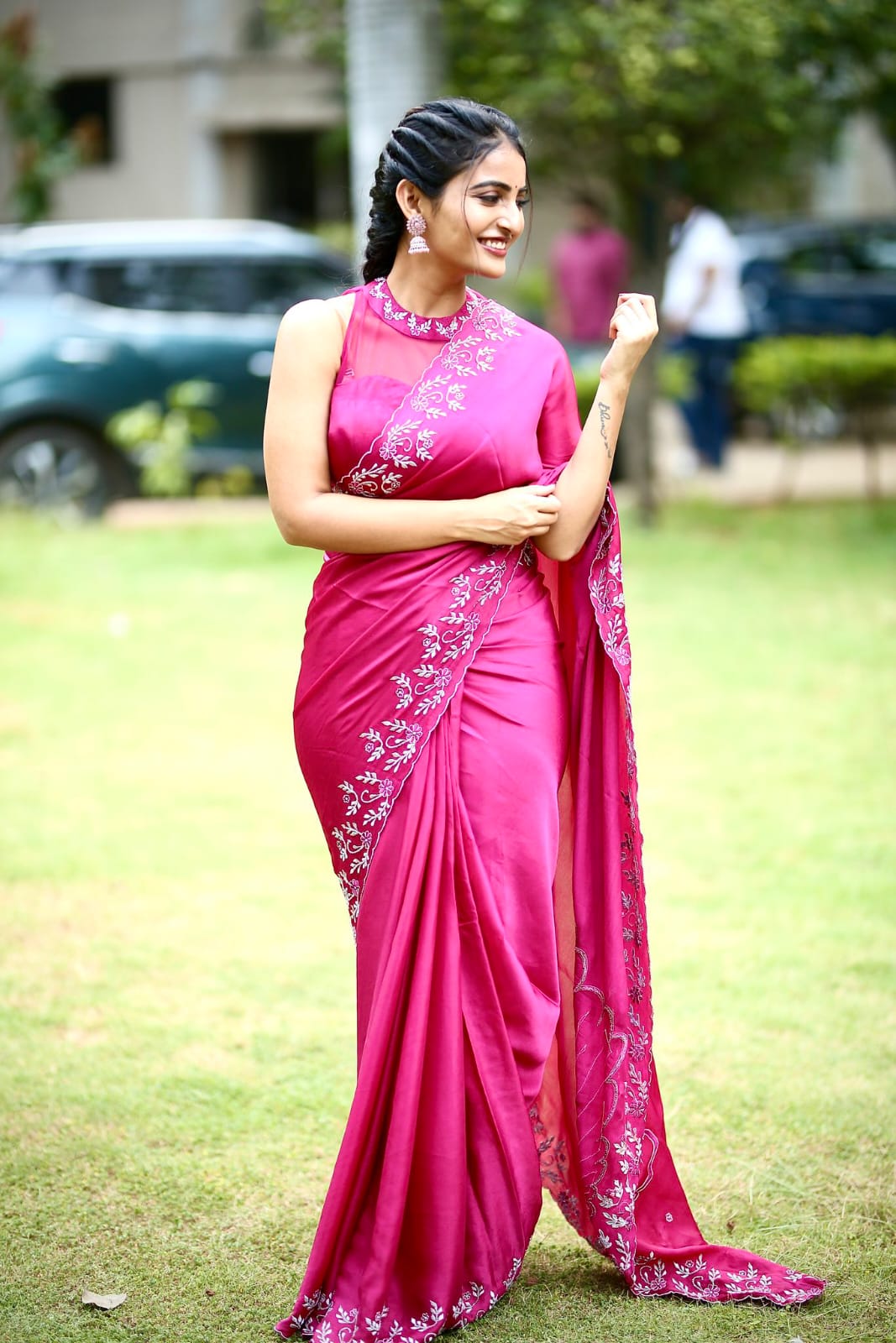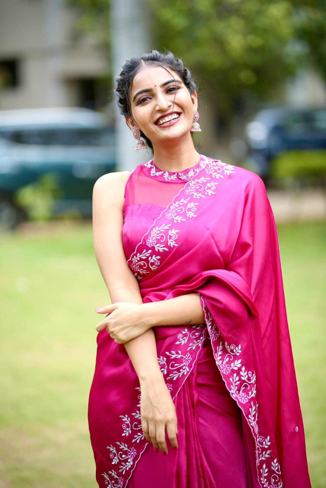 అందులో భాగంగా తాజాగా ఈ బ్యూటీ అదిరిపోయే లుక్ లో ఉన్న మెరూన్ కలర్ శారీని కట్టుకొని అందుకు తగిన మెరూన్ కలర్ లో ఉన్న స్లీవ్ లేస్ బ్లౌజ్ ను ధరించి చాలా క్యూట్ స్మైల్ తో ఉన్న ఫోటోలను తన సోషల్ మీడియా అకౌంట్ లో పోస్ట్ చేసింది. ప్రస్తుతం ఈ బ్యూటీ కి సంబంధించిన ఈ ఫోటోలు సోషల్ మీడియాలో ఫుల్ గా వైరల్ అవుతున్నాయి.