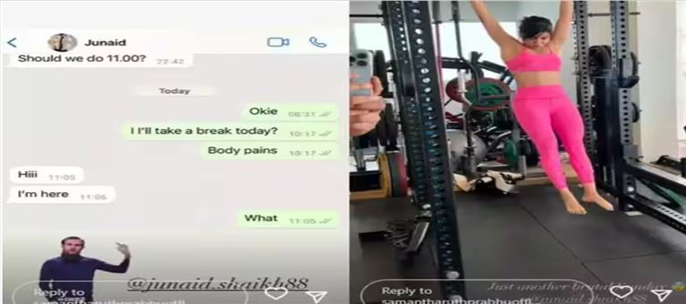 A screenshot of a celebrity's whatsapp chat with actress samantha at 11 p.m. is currently spreading like wildfire on social media. After her divorce from romantic husband naga Chaitanya, from which samantha has been recovering for more than two months, she has again started giving her full attention to films. After the divorce, the movie 'Yasoda' which was released in her role became a hit for Samantha. After this, when the opportunity to act in subsequent films started coming, samantha suffered severe physical pain. At one point she could not even stand up, the doctors who examined her... found that samantha had myositis. Samantha, who finished acting in 'Shaguthalam' with physical pain, revealed her problem only during the dubbing of the film. Following this, many fans and celebrities could be seen consoling her. She was treated for myositis in india but was not successful. She went to America for treatment and returned to india after recovering. Following this, samantha, who has already completed acting in the films Cheetadal web series and Khushi, has not yet fully recovered from the effects of myositis. However, it is said that she is getting successive bollywood and hollywood film opportunities. Despite the impact of the disease, samantha, who is doing physical training as much as possible to keep her body fit, a photo of her whatsapp chat with Gym Trainer is spreading on social media. In this screenshot, samantha says that she is feeling sick and needs a break today. For this, Samantha's gym trainer has come to say that you will see more. Her gym trainer has told her to do exercise without giving her leave.