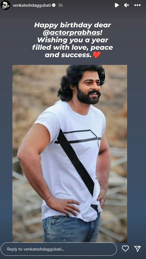 On instagram, veteran telugu actor venkatesh Daggubati also sent wishes to prabhas on his special day. "@actorprabhas, happy birthday! "I hope you have a prosperous, peaceful, and loving new year," he added.