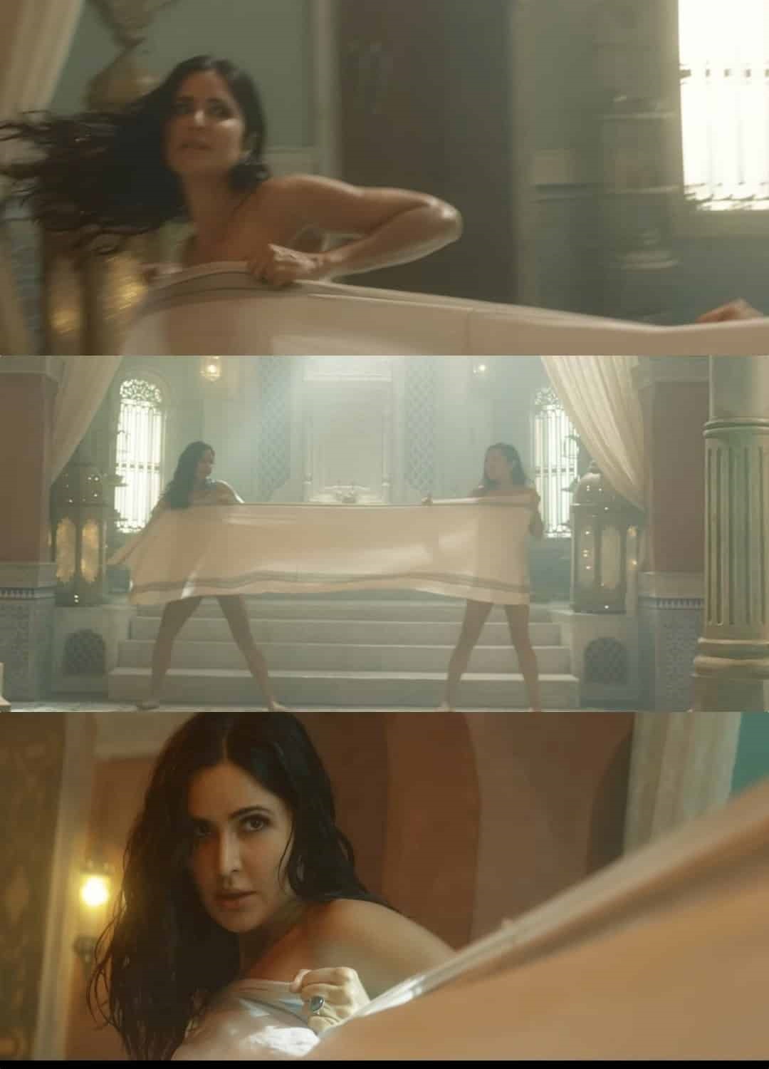 In the movie, katrina kaif portrays Zoya, a former Pakistani woman. Many action scenes with katrina wearing combat boots and armour are shown in the video, but one particular clip goes viral. In a short 5-second clip from the teaser, katrina and a female attacker are shown fighting while both women are covered in towels. This expertly performed scenario is filmed in a way that leaves a lot to the viewer's imagination, giving the impression that it is taking place in a sauna or other similar environment.