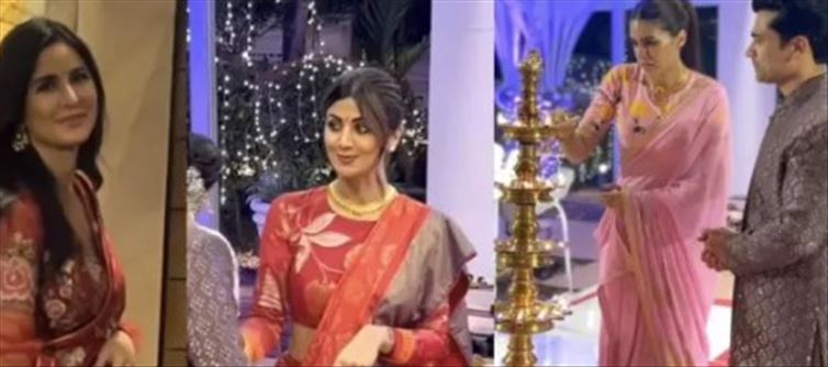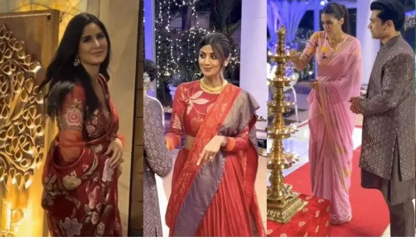 Kalyanraman's navratri bash: katrina looked stunning in a red saree, and Shilpa-Kriti was seen in a royal look