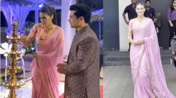 Kriti Sanon arrived in a pink saree at Kalyanaraman's navratri program