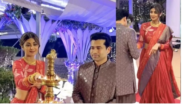 Shilpa Shetty seen in red lehenga at Kalyanaraman's navratri festival