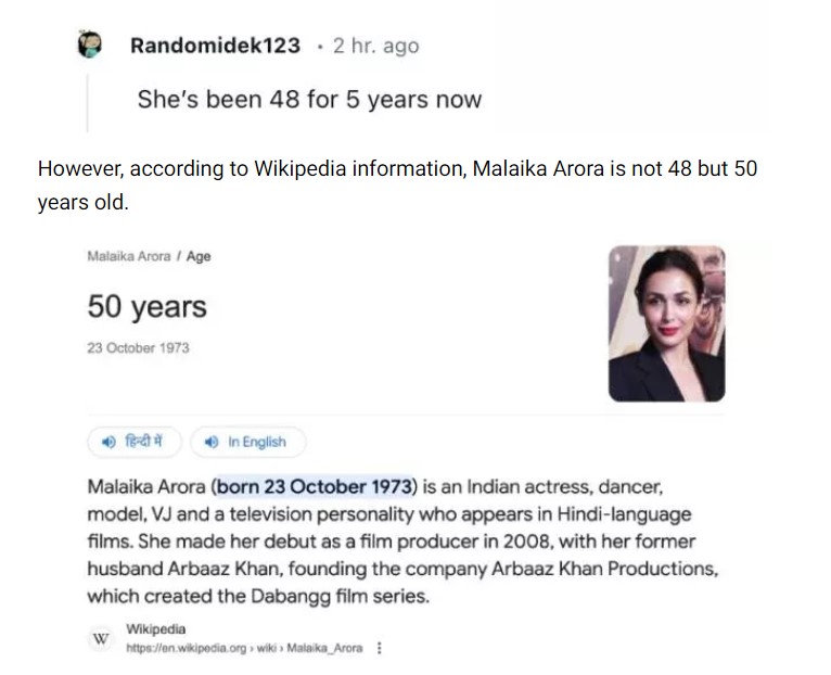On october 23, 2023, malaika shared some pictures from her birthday celebrations. However, it was her caption that got netizens to debate. The actress revealed in the note accompanying the pictures that she has turned 48, which sent the internet into a tizzy. A 'Reddit' user shared a screenshot of Malaika's birthday post and revealed that her real age is 50 years and she is misleading her fans.