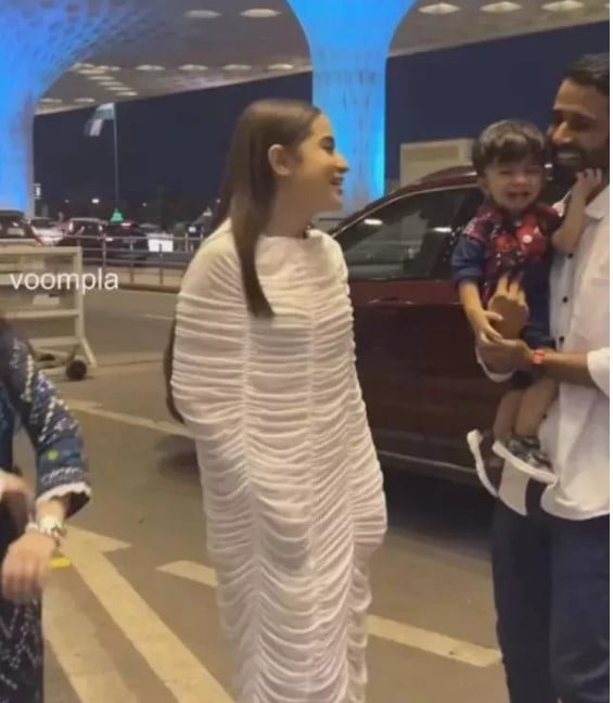 On 24 october 2023, Urfi Javed was seen at the airport. She was seen wearing a white colored ruched dress. However, there were no holes in the sleeves of the dress. In this case, her hands were also hidden inside the dress and she was covered from top to bottom. She completed her look with minimal makeup and a straight-open hairstyle. In a video of Urfi's public appearance, she was seen close to a couple's child.