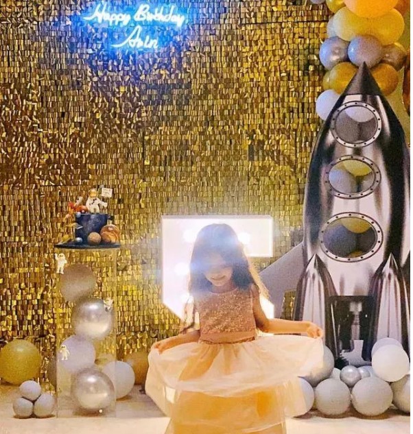On october 24, 2022, Asin's darling daughter Arin turned five years old and her parents organized a party for her. The loving mother had shared a beautiful picture from Arin's birthday party, in which the little girl was looking very cute in a yellow-colored frock. In the photo, we could also see a small caricature of a rocket along with some colorful balloons, an LED banner with 'Happy Birthday Arin' written on it, and a space-themed customized cake.