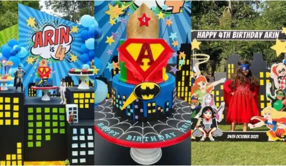 In october 2021, asin shared pictures of daughter Arin's fourth birthday celebration on her insta handle. Giving a glimpse of her little girl's superhero-themed celebration, asin shared a series of pictures in which Arin was seen dressed in a superwoman avatar. With her face covered with a blue eye mask, she was seen posing like a perfect superwoman. Along with this, asin wrote, "Arin turns 4. #ourlittlesuperhero"