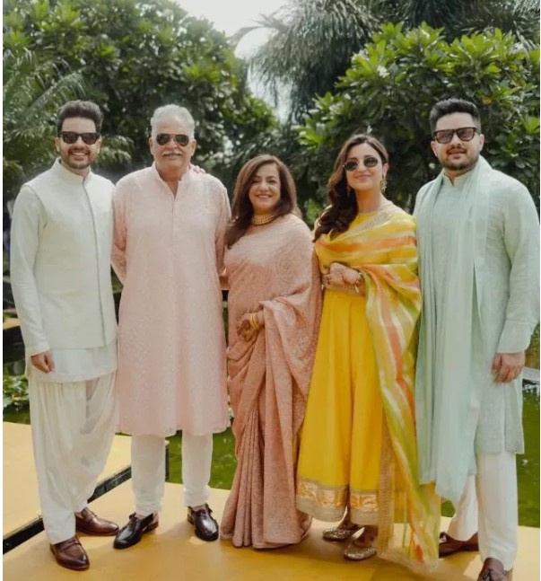 Parineeti Chopra's chuda ceremony was very pleasant, proof of which are these photos. The then bride-to-be performed all her rituals with gusto and was seen enjoying them wholeheartedly. In another glimpse, we can see her brother tying kalires on her hands during the ceremony, while her lovely sister looks at her in awe. Parineeti also got a happy family photo clicked with her parents and siblings, which was quite cute.