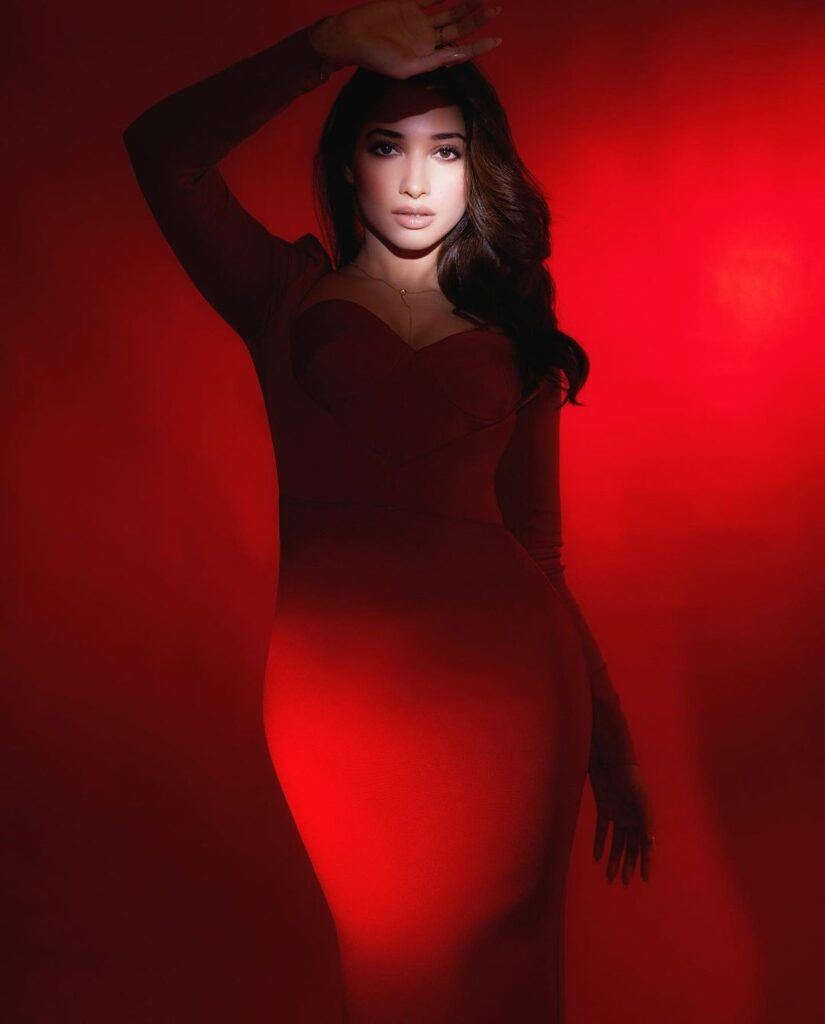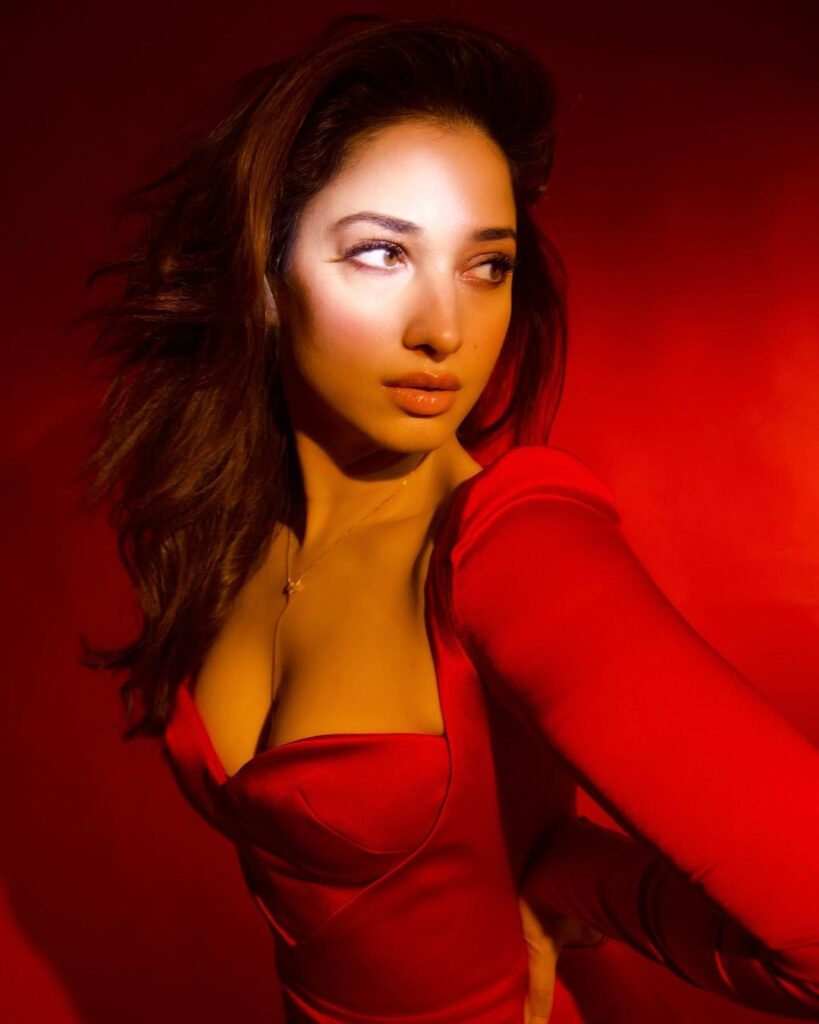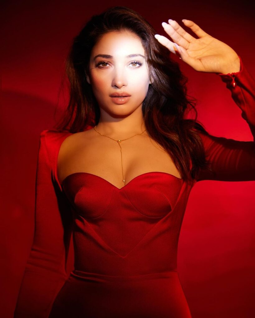 Sweet beautytamannaah bhatia has a great sense of style and understands how to turn heads. She genuinely demonstrated her unparalleled elegance and grace as she effortlessly emanated charm, refinement, and sensuality. The diva recently attracted attention while wearing a red outfit that elegantly displayed her glitzy persona. The gorgeous actress posed for a glitzy photo shoot with confidence and grace. She really stole the show with her shiny cosmetics and a golden necklace around her neck. Everyone was in awe of Tamannaah's beauty as her hourglass shape was expertly emphasized by her choice of a bodycon dress. Her sparkling personality was accentuated by the bright red color of the dress, and her contours were elegantly accented by its snug fit. In the picture, tamannaah looked stunning, her skin looking beautiful and her hair done just right. It was difficult to look away from her because of her alluring appearance and her seductive, self-assured attitude. The fashion world takes notice when tamannaah bhatia shows off her finest style. Her holiday-inspired attire is especially noteworthy. The actress who will be the star of the Jewels of india presentation during the company's 25th founding event has showed us her traditional attire. Her outfit of the day was a lime-green lehenga choli with sequins and elaborate beading. The slender straps of the plunging neckline blouse were exquisitely embellished with silver flowers.