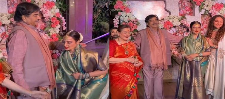 Veteran actress rekha greeted shatrughan sinha by touching his feet at a wedding reception on saturday night. In a video going viral, rekha was seen present at the wedding reception venue when Shatrughan arrived. The actress first met with the yesteryear actor’s daughter, actress sonakshi sinha before she made her way to Shatrughan. In the video, rekha was seen greeting Sonakshi with a warm hug and even had a quick chat with her. She then made her way to Shatrughan.
