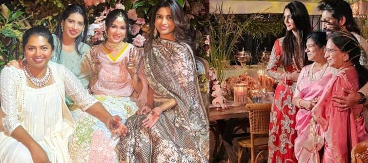 The vibrant and colourful mehendi ceremony on october 31 served as a boisterous precursor to varun Tej and Lavanya Tripathi's lavish destination wedding. Brightly coloured attire was spotted on guests, adding to the joyous mood.  The pair looked stunning in identical pink clothing, according to the dress code. lavanya tripathi enhanced her gorgeous look by accessorising herself with bold jewellery and wearing a multicoloured lehenga with a pink dupatta.