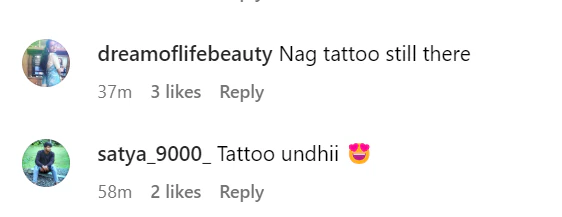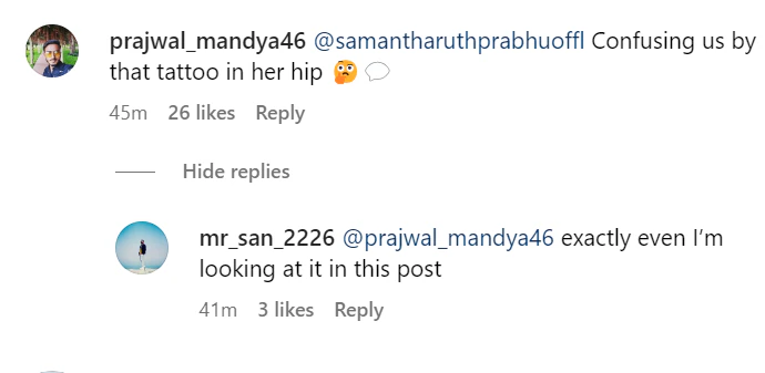 The 'Yashoda' actress posted a composite of four of her own pictures on her instagram feed on november 3. We were able to discern the 'Chay' tattoo on her side rib in one of the pictures. A few of her instagram followers saw the tattoo and sent remarks.
