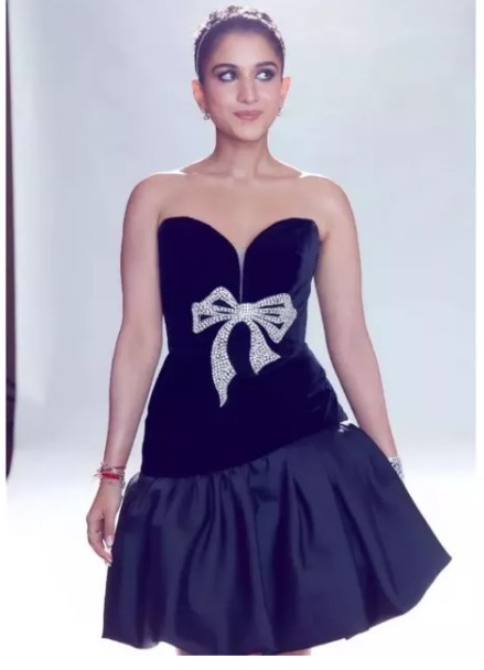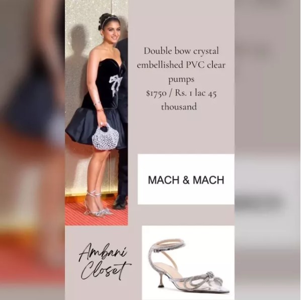 Radhika Merchant was seen in a very glamorous avatar at the event at jio World Plaza. For the grand evening, the future daughter-in-law of the Ambani family wore a black colored strapless velvet dress from the label 'Monique Lhuillier', which cost Rs 3 lakh 58 thousand. With this dress, radhika carried double bow-crystal embellished pumps and heels of the 'MACH & MACH' brand, which cost 1750 dollars i.e. 1 lakh 45 thousand rupees.