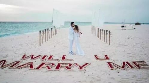 Inspired by the proposal moment of bollywood couple deepika padukone and ranveer singh, a real-life couple also did something similar. We got a great video of the couple's beach proposal moment, which was adorable. The video starts with the couple named Mahhi and jai boarding a helicopter that was headed to the beautiful location of Maldives.