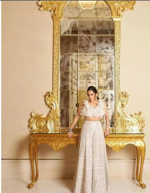 On november 6, 2023, a fan page of the Ambani family shared some priceless pictures of Shloka Mehta on its instagram handle. In the pictures, the elder daughter-in-law of the Ambani family can be seen getting ready for manish Malhotra's diwali party and posing beautifully in front of the camera. However, it was her stunning style statement that caught our attention. Shloka had chosen a white colored Sharara set for the party and she was looking very beautiful.