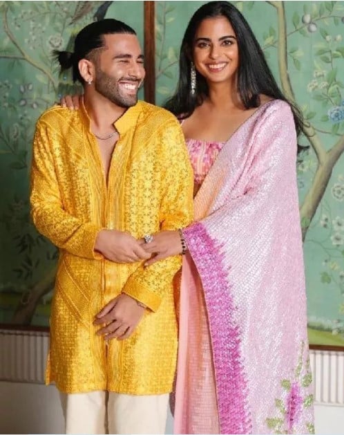 We also got a picture of Isha Ambani from manish Malhotra's diwali party. In this, she can be seen posing beautifully for the camera while standing in front of a beautiful background that features a beautiful wall painting. However, it was Isha's beauty, which captivated our hearts.