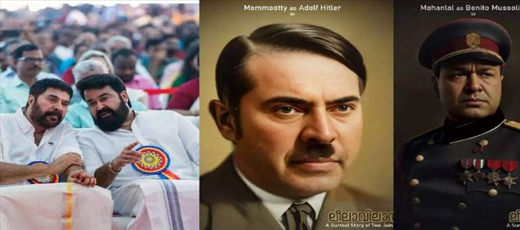 ഹിറ്റ്ലറായി മമ്മൂക്ക, മുസോളിനി ആയി ലാലേട്ടൻ; 'ലീലാവിലാസ'ത്തിന്റെ ചിത്രങ്ങൾ പങ്കു വച്ച് അരുൺ നൂറ! അത്തരത്തിൽ രണ്ടു ചിത്രങ്ങളും കുറിപ്പുമാണ് ഇപ്പോൾ സോഷ്യൽ മീഡിയയിൽ വൈറൽ ആവുന്നത്. അരുൺ നൂറ എന്ന കലാകാരൻ മലയാളികളുടെ പ്രീയപ്പെട്ട മമ്മൂക്കയെ ഹിറ്റ്ലർ ആയും ലാലേട്ടനെ മുസോളിനി ആയും എഐ ചിത്രങ്ങൾ വികസിപ്പിച്ചെടുത്തിരിക്കുകയാണ്, കൂട്ടത്തിൽ രസകരമായ ഒരു കുറിപ്പും. ഗ്രാഫിക്സ് കലാകാരന്മാർ ഓരോ ദിവസവും ആർട്ടിഫിഷ്യൽ ഇൻറലിജൻസിൻറെ സാധ്യതകൾ ഉപയോഗപ്പെടുത്തി വിസ്മയിപ്പിക്കുന്ന നിരവധി സൃഷ്ടികളാണ് പുറത്തിറക്കുന്നത്. "അതിനെന്താ ഭിക്ഷുക്കളെ...നിങ്ങൾക്ക് ആവശ്യമുള്ള വെള്ളം ഈ കുടത്തിലുണ്ട്." അവൾ അവർക്ക് വെള്ളം കുടിക്കാൻ നൽകി യാത്രാ വിവരങ്ങൾ അന്വേഷിച്ചു.