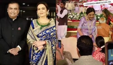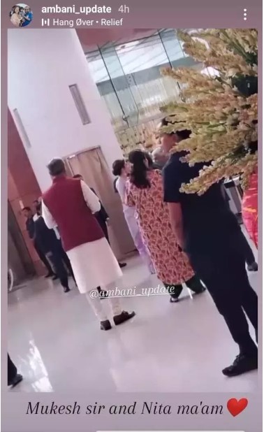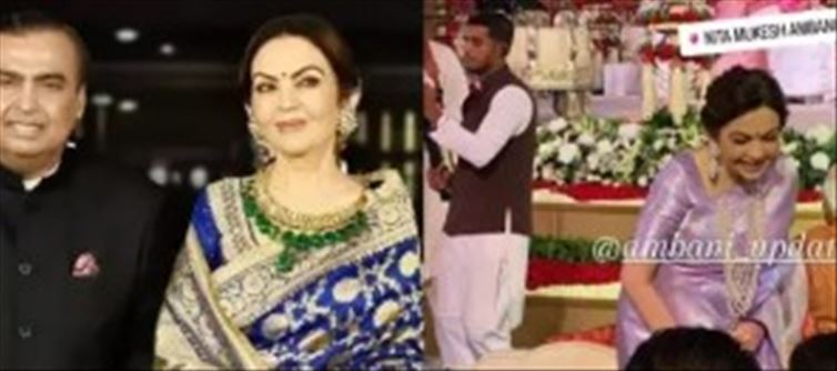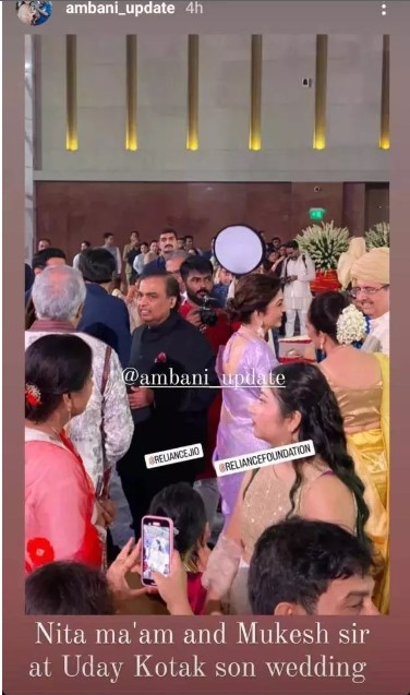 A fan page of the Ambani family has shared some stunning glimpses of Nita Ambani and mukesh ambani as they attended the wedding ceremony of uday Kotak's son held at 'Nita mukesh ambani Cultural Centre' in Mumbai. Neeta was looking very beautiful in the pictures. He was seen interacting with other people present there. When mukesh and Neeta came out after attending the wedding ceremony, they were seen being guided by the groom's relatives.