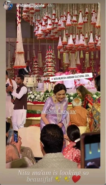 Nita Ambani attended uday Kotak's son's wedding with her husband mukesh and looked beautiful in a lavender saree.