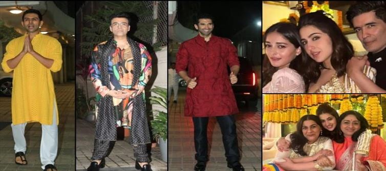 Earlier on november 9, sara ali khan hosted an intimate pre-Diwali party in mumbai for close industry friends and family members. ananya Panday, Kartik Aaryan, manish Malhotra, karan johar, and aditya roy kapur attended the occasion. Pictures from the glitzy night have surfaced on the internet, giving us a sneak peek into the private bash. sara was decked up in a golden-white ethnic number.