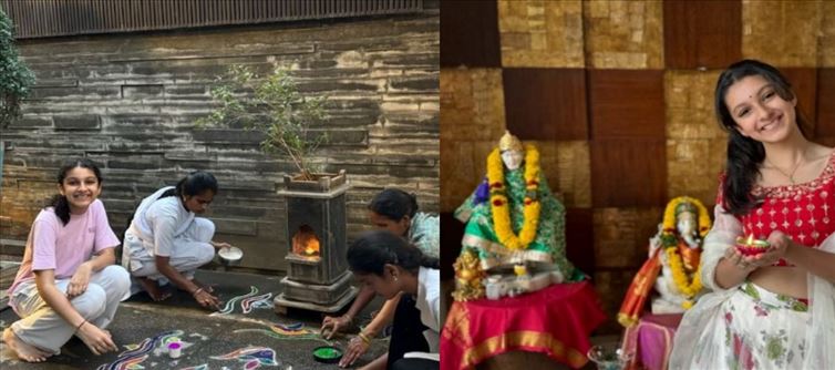 చదువుతో పాటు మరొక పక్క కల్చరల్ కి సంబంధించిన అన్ని విషయాలను నేర్చుకుంటూ ప్రతి పండగకి చాలా పద్ధతిగా తెలుగింటి అమ్మాయిగా కనిపిస్తూ ఉంటుంది. సితారకు అందుకు సంబంధించిన ఫోటోలను కూడా షేర్ చేస్తూ ఉంటుంది. తాజాగా దీపావళి సందర్భంగా ఉదయాన్నే లేచి తన ఇంటి ముందు ముగ్గులు వేయడం జరుగుతోంది.తన ఇంట్లో పనిచేసే వాళ్ళతో కలిసి సితార ఇలా ముగ్గులు వేయడం జరిగింది. అందుకు సంబంధించిన ఫోటోలు తాను వేసిన ముగ్గులను సోషల్ మీడియాలో షేర్ చేయగా ప్రస్తుతం ఈ ఫోటోలు వైరల్ గా మారుతున్నాయి.