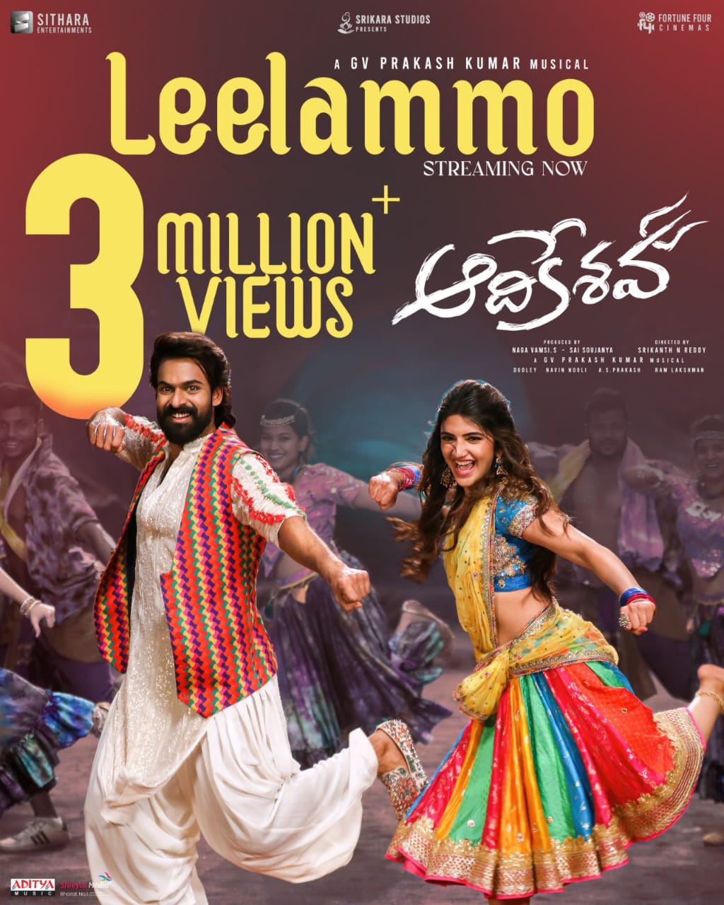 సితార ఎంటర్టైన్మెంట్ బ్యానర్ పై సూర్య దేవర నాగ వంశీ ఈ మూవీ ని నిర్మిస్తున్నాడు. ఇకపోతే ఈ మూవీ ని మరికొన్ని రోజుల్లోనే ఈ చిత్ర బృందం విడుదల చేయబోతుంది. ఈ సినిమా కోసం విడుదల తేదీ దగ్గర పడుతున్న నేపథ్యంలో ఈ మూవీ మేకర్స్ ఈ సినిమాకు సంబంధించిన పాటలను ఒక్కో దానిని విడుదల చేస్తూ వస్తున్నారు. అందులో భాగంగా ఇప్పటికే కొన్ని పాఠాలను విడుదల చేశారు. ఇకపోతే రెండు వారాల క్రితం ఈ సినిమా నుండి "లీలమ్మో" అంటూ సాగే ఓ పాటను విడుదల చేశారు. ఇకపోతే ఈ సాంగ్ లో వైష్ణవ్ మరియు శ్రీ లీల తమ డాన్స్ తో ప్రేక్షకులను అద్భుతమైన రీతిలో ఆకట్టుకున్నారు. అలాగే ఈ సాంగ్ ట్యూన్ కూడా బాగుండడంతో ఈ పాటకి ప్రేక్షకుల నుండి మంచి రెస్పాన్స్ లభిస్తుంది. దానితో ఇప్పటి వరకు ఈ మూవీ లోని ఈ సాంగ్ 3 మిలియన్ ప్లస్ వ్యూస్ అందుకుంది. ఈ విషయాన్ని ఈ మూవీ బృందం కూడా అధికారికంగా ప్రకటించింది. ఇకపోతే కొండపల్లి ... రంగ రంగ వైభవంగా మూవీ లతో అపజయాలను అందుకున్న వైష్ణవ్ ఈ సినిమాతో ఏ స్థాయి విజయాన్ని అందుకుంటాడో చూడాలి.