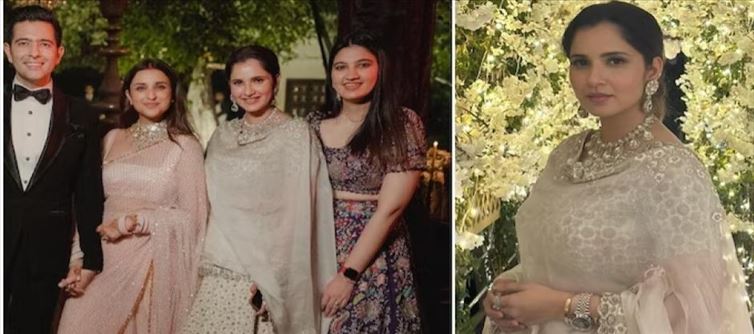 from Sania, she is seen giving a fun pose with her husband Raghav Chadha. Sania had reached udaipur with her