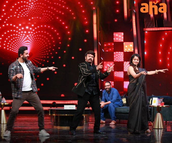 Directed by sandeep Vanga, "Animal" stars bollywood heart throb ranbir kapoor and leading actress rashmika Mandanna. The episode showcased energetic hosting by balakrishna, who engaged in lively conversations with the guests. ranbir kapoor surprised everyone by delivering the iconic dialogue "Don't trouble the trouble" and shared a fun moment, saying, "Flute is not in front of a deer, but purple is in front of a lion."