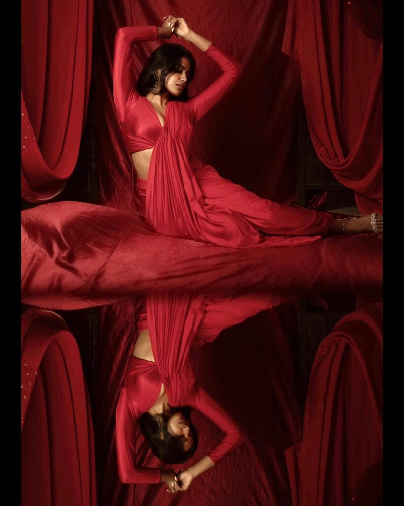 Shivani Rajashekar recently delighted her followers to a compilation of vintage photos highlighting her breathtaking red costume donned on the SIIMA 2023 red carpet. Shivani exudes an alluring charm in these stunning photographs, oozing confidence and sensuality as she stands for the camera.